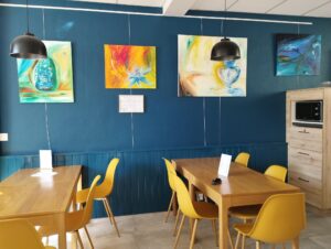 2 mai 2025Expo joyeux et chaleureux pour inaugurer le bar associative, Le Fraternel, à Barbezieux-Saint-Hilaire ou l’équipe accueil, écoute et élève la vie avec le café et l’art!