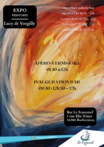 2 mai 2025Expo joyeux et chaleureux pour inaugurer le bar associative, Le Fraternel, à Barbezieux-Saint-Hilaire ou l’équipe accueil, écoute et élève la vie avec le café et l’art!