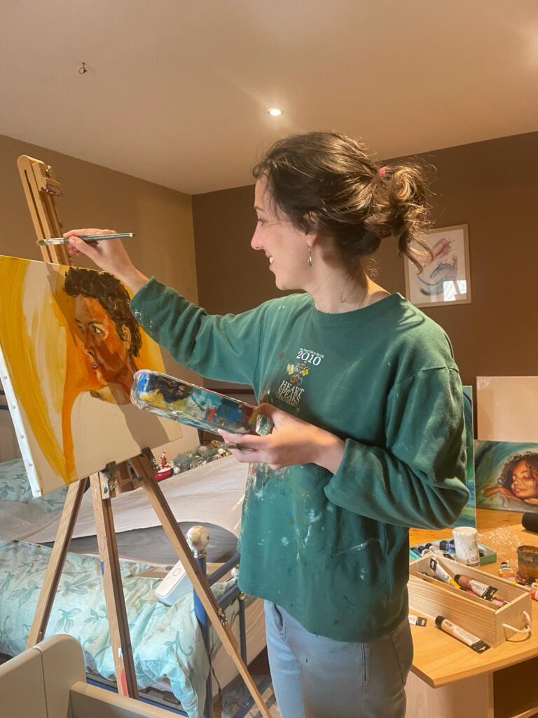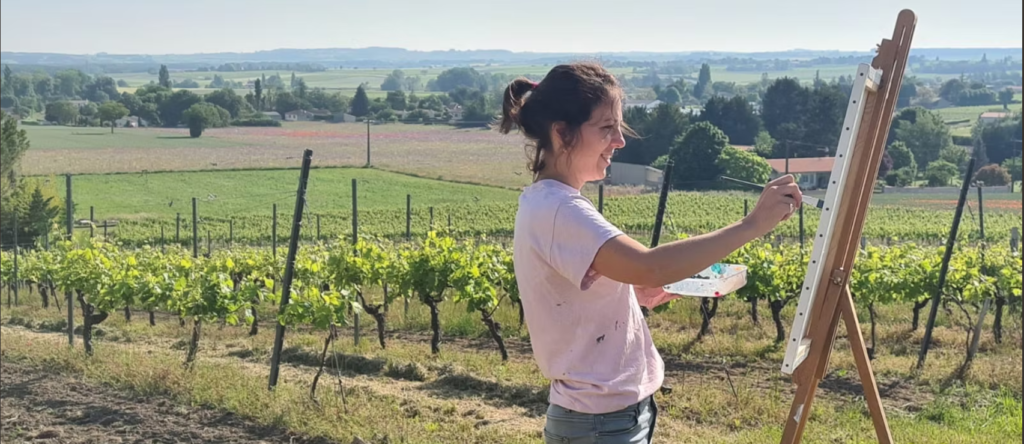 Lucy de Vregille exhibits her paintings in Paris and in the Charente region, where her studio is located among vineyards of Cognac. In 2025, she was successfully chosen for a commission for the historical Sacred Heart Sanctuary in Paray-le-Monial, and her work is now part of the Sacré-Cœur Basilica’s permanent collection. She obtained a degree in History of Art from York University UK in 2010 and was awarded the Symbolic Abstraction Prize in 2024 by the Loire Artistic Academy. Her work is present across Europe and she is currently working on commissions for buyers in Hong Kong and Singapore.